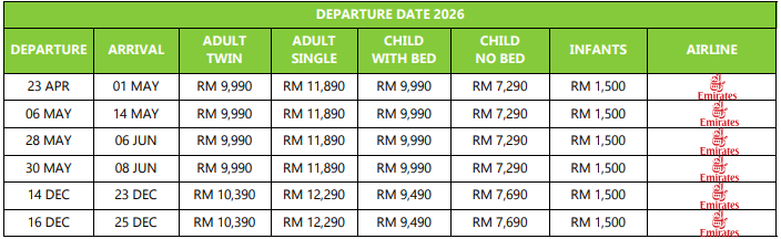 HARGA DARI: RM 8,990/PAX