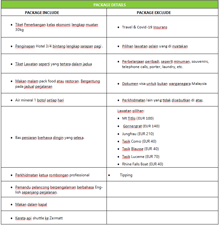• Prices are subject to change during foreign exchange without prior notice and Kembara Salam Travel &